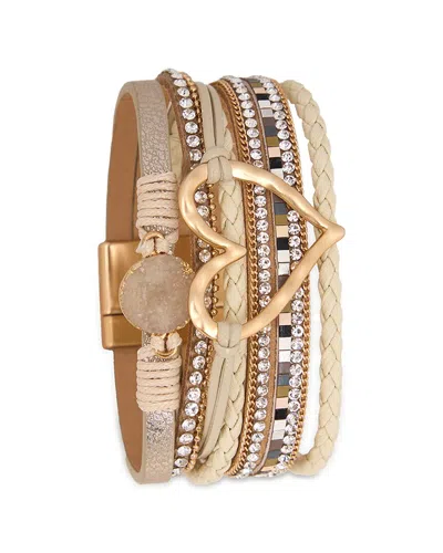 Leather Snake Skin Print Medallion Bracelet In Gold