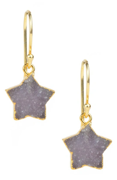 14k Druzy Star Dangle Earrings In Grey