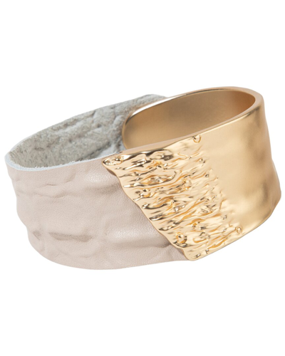 Rock N' Roll Chain & Leather Cuff Bracelet In Gold