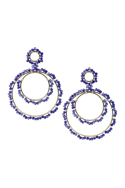 Paradise Beaded Double Hoop Drop Earrings In Blue