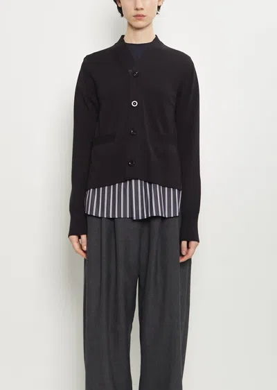 Abe honed her skills working for Rei Kawakubo and Junya Watanabe of Comme des Garçons for ten years, before starting Sacai in 1998. Aiming to make clothing suitable for any situation, Abe melds and transforms familiar women’s knitwear, jackets, dresses, trousers, and blouses into novel and challenging design hybrids that interest visually in 360 degrees. Ruffles, patchwork, and paneling add feminine yet intellectual flourishes to Sacai’s innovative separates.
