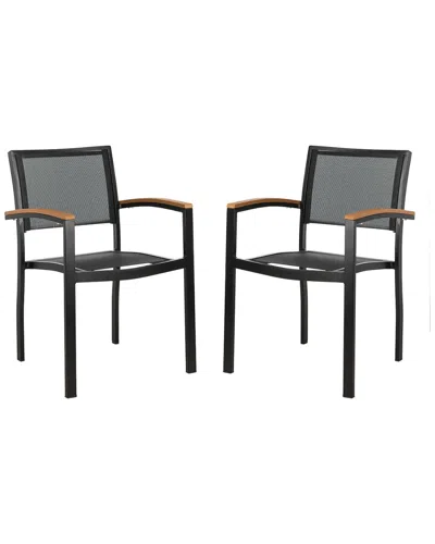 Set Of 2 Kaelan Outdoor Stackable Chairs In Black/brown