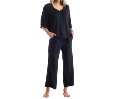 Dream Relaxed V-neck With Capri Lounge Set In Black In Blue