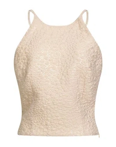 Woman Top Beige Size 4 Polyester, Polyamide, Metallic Polyester In Sand