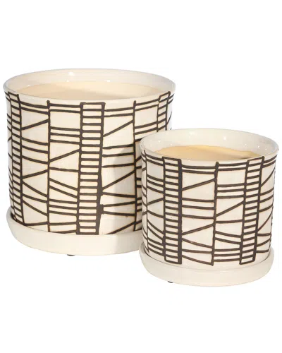Ceramic Tribal Planter Set In Ivory