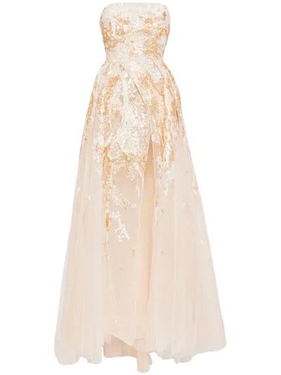Tulle Beaded Dress With Halter Neckline In Animal Print