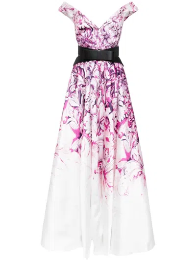 Mikado Printed Dress With Off-shoulder Sleeves In Multi