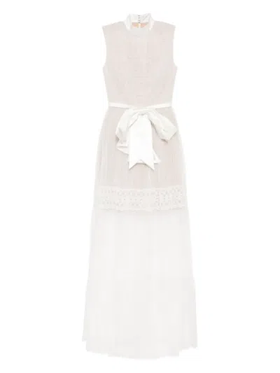 Crepe Off-shoulder Dress With A Tulle Bow In Pink