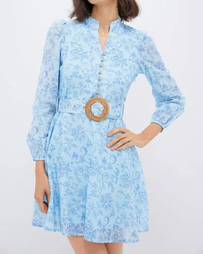 Floral Belted Long Sleeve Dress In Sky Baroque In Blue