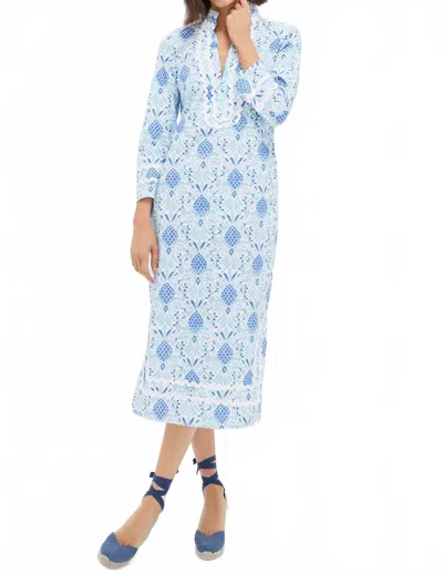 Long Sleeve Classic Caftan Midi Dress In Pineapple Print In Blue
