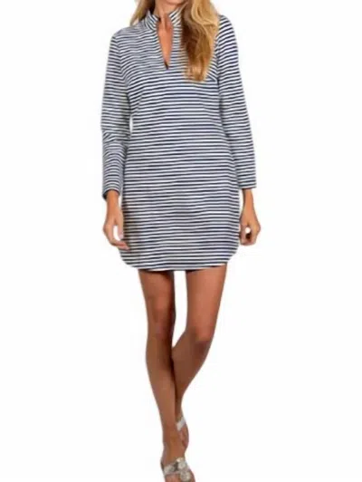 Long Sleeve Classic Tunic Dress In Navy/white In Multi