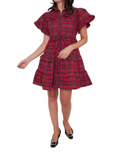 Ruffle Shirt Dress In Red Tartan Plaid In Multi