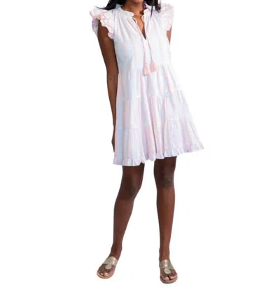 Smocked Flutter Strap Dress In Pink/white In Multi