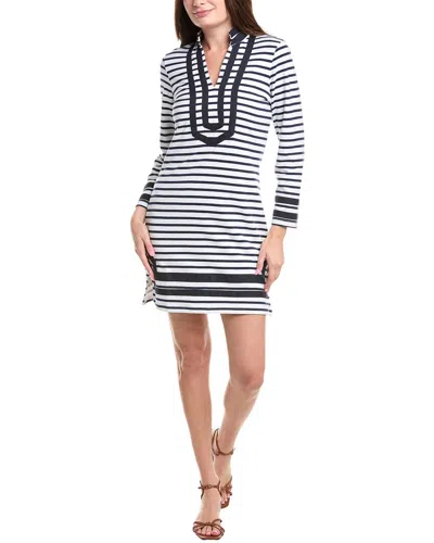 Short Sleeve Tunic Dress In White Hydrangea Stripe In Blue