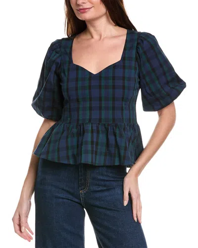 Metallic Tweed Zip Back Peplum Top In Navy In Blue