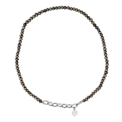 Women's Black / Silver New Moon Necklace With Natural Black Pearl In Sterling Silver In Multi