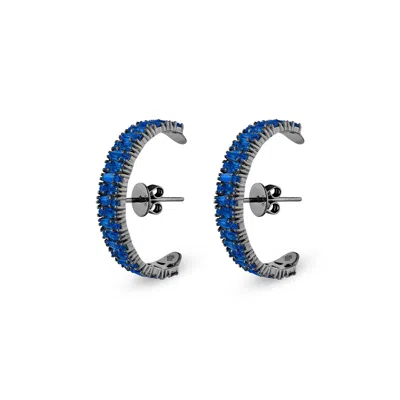 Women's Blue / Black Culture Earrings With Man Made Sapphires In Premium Black Rhodium In Multi
