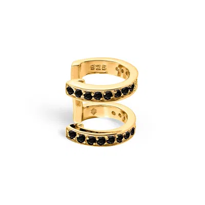 Women's Gold / Black Edge Duo Ear Cuff With Man Made Black Cz Diamond Stimulant In Sterling Silver & In Multi