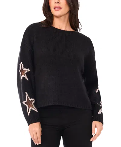 Women's Crewneck Star Pattern Sweater In Black