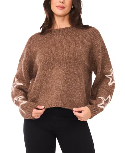 Women's Crewneck Star Pattern Sweater In Brown