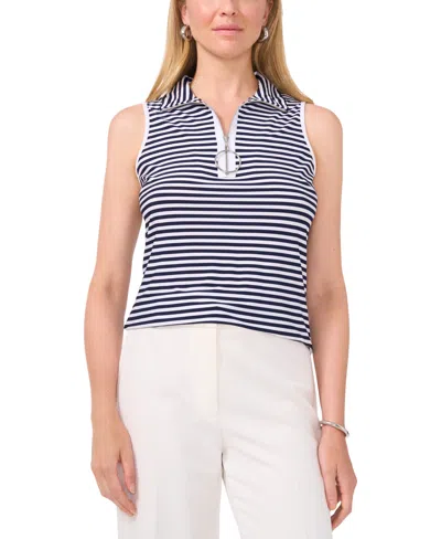 Women's Striped Sleeveless Collared Top In Navy White