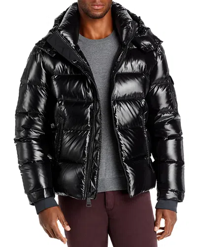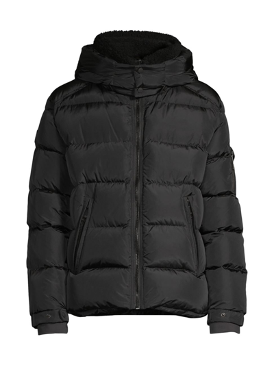 Frontier Nylon Shearling Trim Hooded Down Jacket In Black