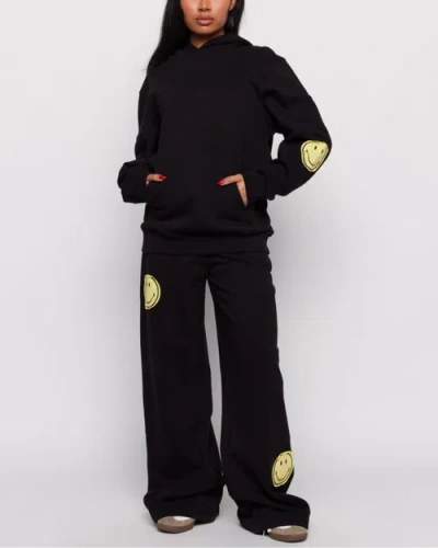 Smiley Oversized Hoodie In Black