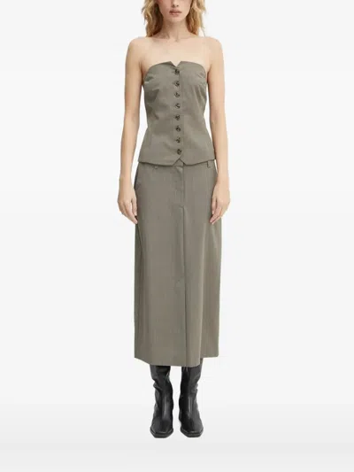 Button-front Strapless Top In Gold