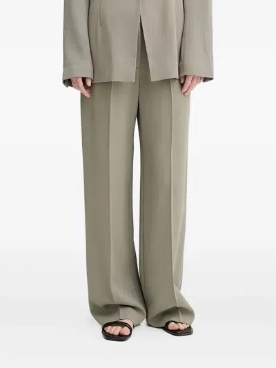 Pleated Wide-leg Trousers In Green