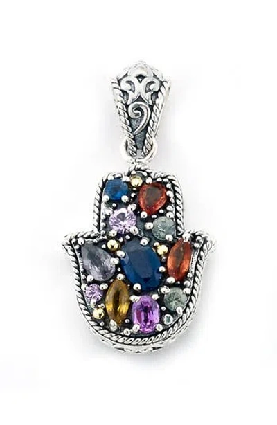 Sterling Silver & 18k Gold Multicolor Sapphire Hamsa Pendant In Metallic