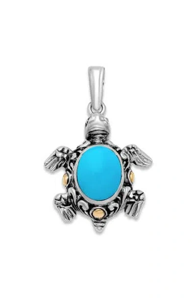 Sterling Silver & 18k Gold Turquoise Turtle Pendant In Blue