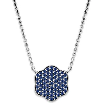 Sterling Silver Blue Sapphire Pavé Clover Necklace