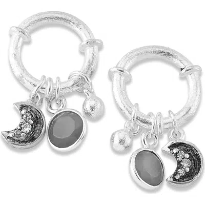 Silver Gemstone Moon Charm Earrings In Neutral
