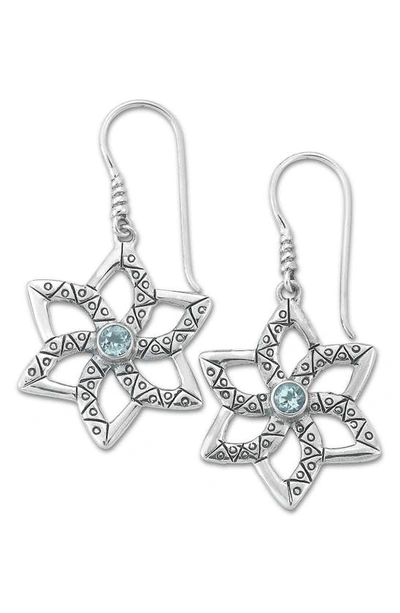 Blue Topaz Flower Drop Earrings