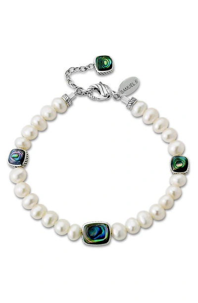 Freshwater Pearl & Abalone Bead Necklace In White