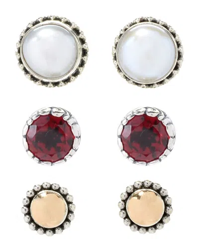 18k & Silver 1.20 Ct. Tw. Garnet 7mm Pearl Set Of 3 Earrings In Multi