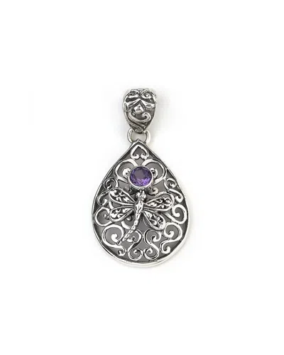Silver 0.25 Ct. Tw. Amethyst Filigree Butterfly Pendant In Metallic