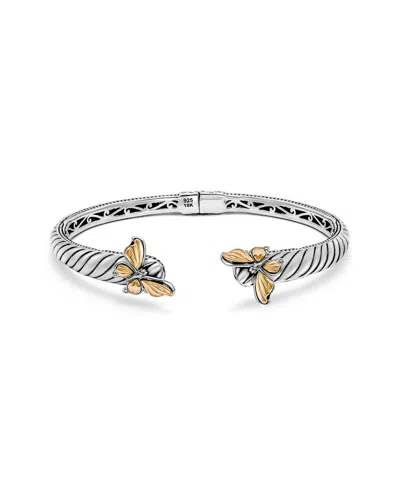 18k & Silver Bird Motif Cable Bangle Bracelet In Metallic