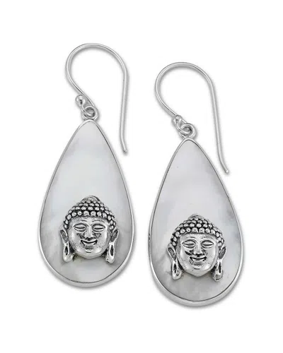 Silver Pearl Buddha Earrings In Metallic