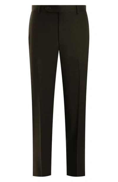 Flat Front Straight Leg Wool Dress Pants In Taupe