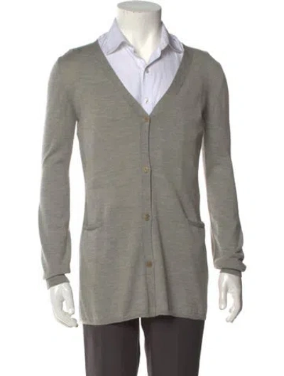 Pre-owned V-neck Long Sleeve Cardigan In Gray