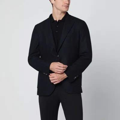 Navy Blue Single Breasted Wool Jacket In Multi