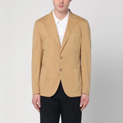 Walnut-coloured Single-breasted Jacket In Cotton In Beige