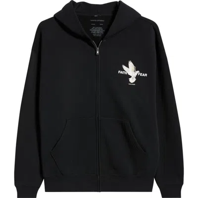 Faith Over Fear Cotton Fleece Zip Hoodie In Black
