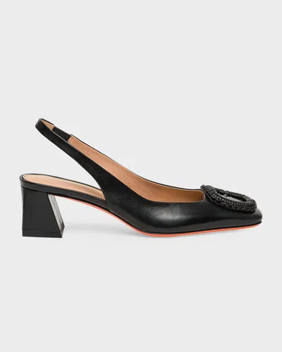 50mm Corolle Leather Slingback Buckle Pumps In Black