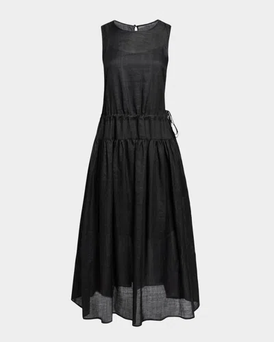 Emerson Sleeveless Silk Midi Dress With Skirt Side Cascading Ruffles In Chamomile