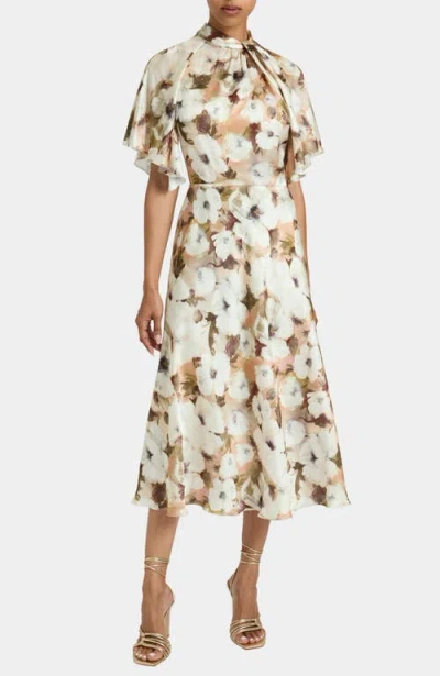 Niki Mock Neck Midi Dress With Short Cape Sleeves In Floral Georgette In Multi