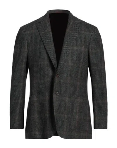 Men's Wool, Silk And Cashmere Plaid Sport Coat In Brown