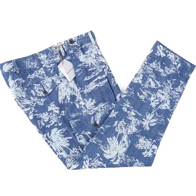 Pre-owned By Kiton Tropical Palm Printed Denim Dress Pants 34 (eu 50) In Blue