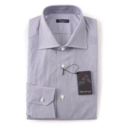 Pre-owned Napoli By Kiton Navy Blue Micro Stripe Cotton Dress Shirt 15.75 X 36